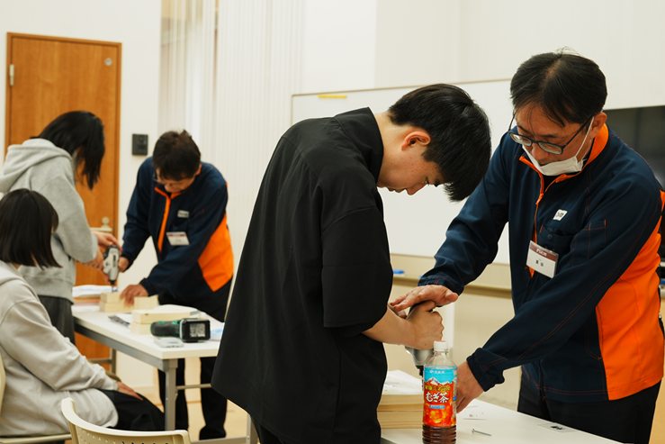 ホームクラフトコースが座学・実習をしている施設「DIY training place」で、コースの説明を受けることができます。また、実際に実習で使用する材料や工具を使用し、実習体験も行います。