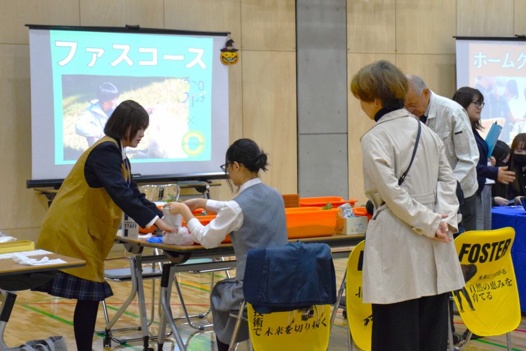 今回は初の試みとして、体育館の中に「ファスコース」と「ホームクラフトコース」の体験ブースや在校生の話が聞けるコーナー等を設けました。