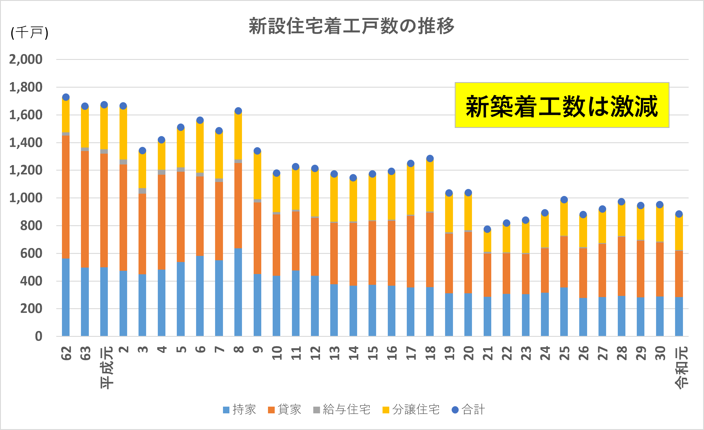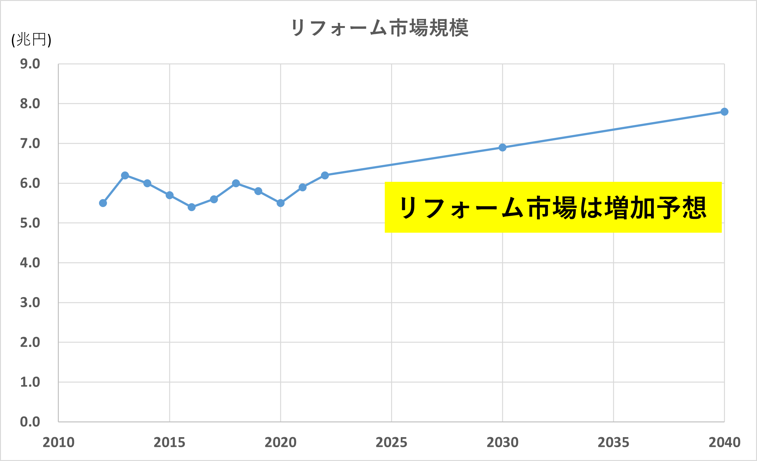 資料)国土交通省「住宅着工合計」から作成、リフォーム市場規模は2023年以降は予想値