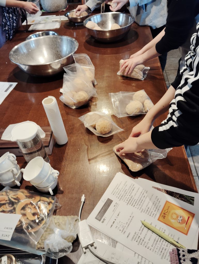 空気を抜きながら、ソフトボール大に丸めて味噌玉を作る。