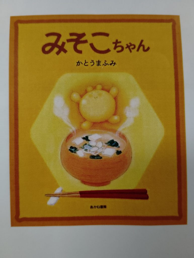 初めに、かとうまふみさんが書いた絵本、「みそこちゃん」の読み聞かせから始まりました。お母さんと初めて味噌を作った、みこちゃん、ねかせている味噌がかわいくて観察しているとびっくり、味噌の赤ちゃんがあらわれました。不思議なその子を「みそこちゃん」と呼び見守っていきます。味噌作りの工程とおいしくて体に良い味噌の魅力を伝える絵本です。