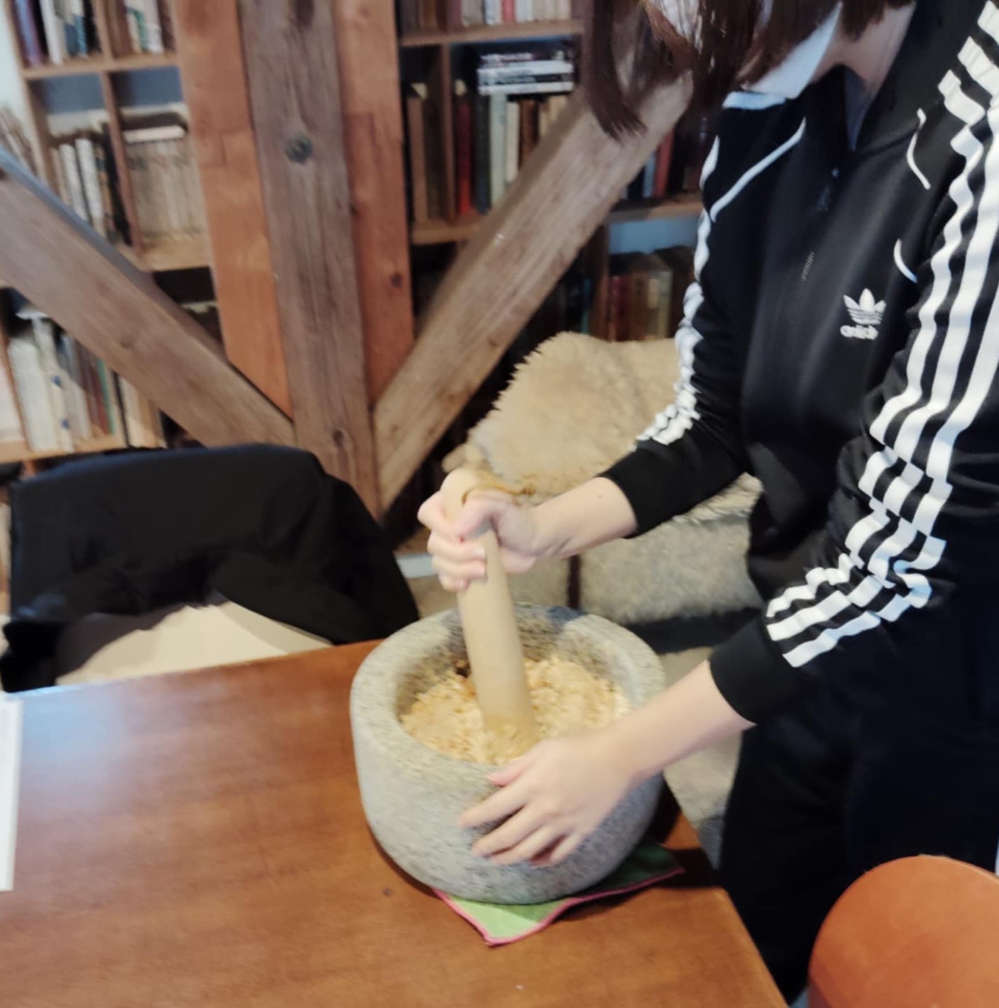 味噌作りは、メイン講師の永田さんのライブラリーで行われました。