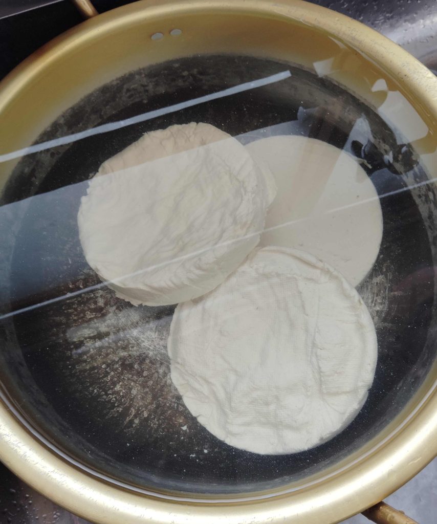 脱水されて豆腐が出来上がりました。