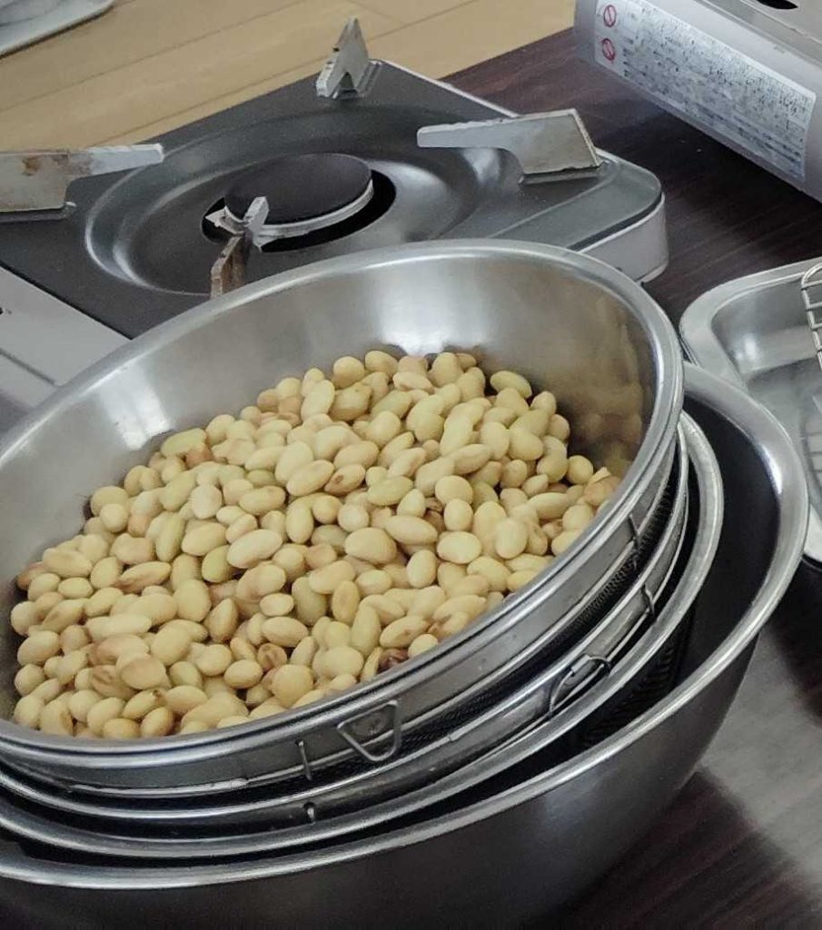 収穫した大豆を使いました。